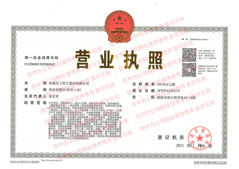 南通化工輕工股份有限公司成立于1963年7月1日, 1997年改制為股份有限公司,注冊資本10116萬元。公司自1963年成立以來,始終堅(jiān)持“誠信為本”的商信文化,向海內(nèi)外廣大供應(yīng)商按時(shí)足額履行付款、向廣大客戶按時(shí)按質(zhì)按量按價(jià)履行供貨、向金融機(jī)構(gòu)按時(shí)足額履行還款等,在商界享有很高聲譽(yù)。